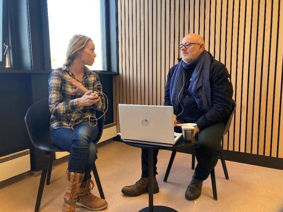 Her er bilde av Maria Louise Li og Dag Erik Hagerup i filosofisk samtale ved oppstart SEPREP TU Stavanger 8. januar. Det er Relasjon, etikk, kunnskap og menneskesyn som er studentenes første emne (8015).