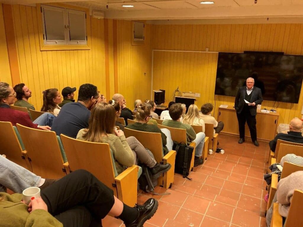 Erlend R M-Bangstad er studieprogramkoordinator for SEPREP TU/VID. Han presenterte innholdet i utdanningen på åpningsdagen, Leangen Gård, Trondheim, 14. januar.